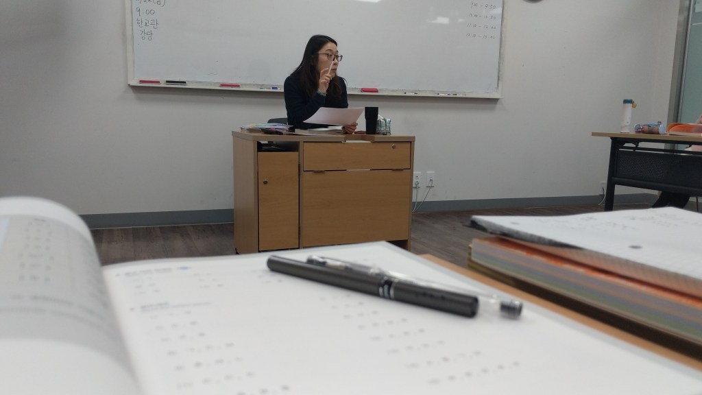 sitting in class, day 1 – my sansaengnim (teaching)