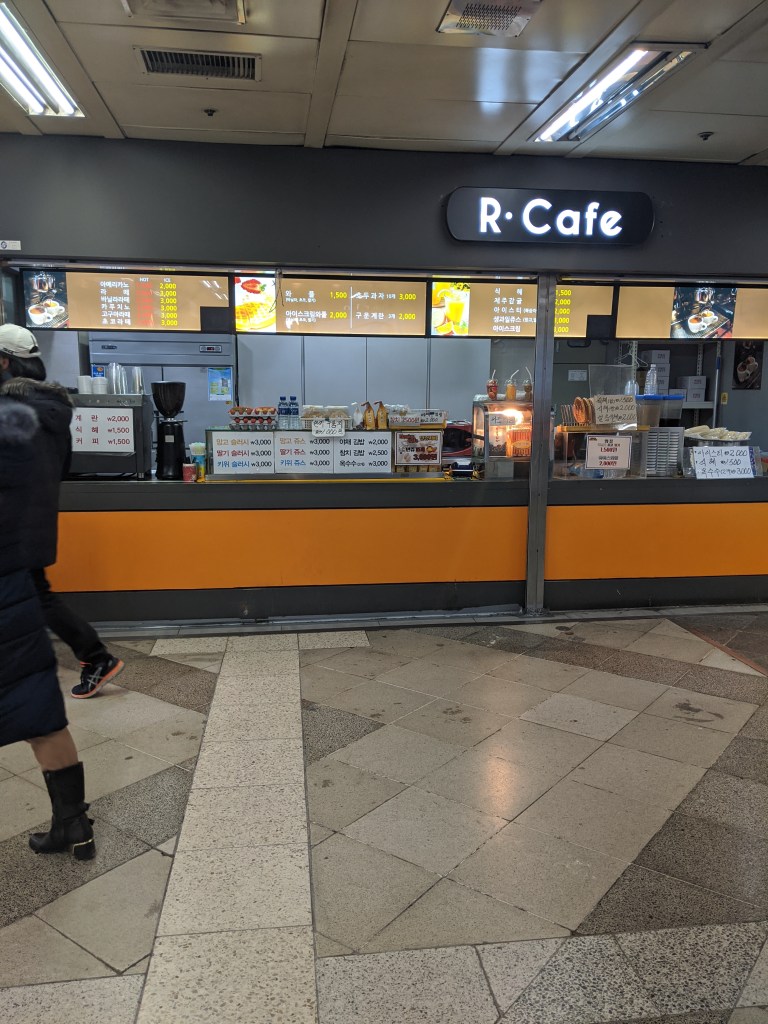 Korean subway stations have stores and food shops – this is a waffle shop